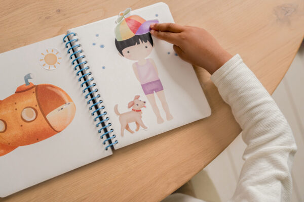 Zeszyt z naklejkami ubieranka Rosa&Friends i Jim&Friends od Little Dutch to niekończąca się przygoda z kreatywnością! W co dziś ubierzesz swoich ulubionych bohaterów Little Dutch? Dzięki tej książeczce – ubierance zamienisz się w kreatora lub kreatorkę mody. Książka zawiera 24 strony z wizerunkami Twoich ulubionych bohaterów Little Dutch, a także 12 stron z naklejkami najwspanialszych kostiumów, ubrań i akcesoriów. Zeszyt z naklejkami w wygodniej formie zeszytu na spirali wykonany jest z wytrzymałego kartonu. To idealne zajęcie zarówno w domu, jak i w podróży! Zeszyt z naklejkami zapewnia rozwój umiejętności motorycznych, kreatywności i koncentracji.