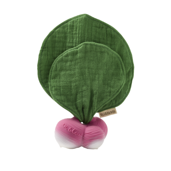 Marchewka i rzodkiewka jest miękka i łatwa do złapania. Możne być również przymocowana do smoczka.