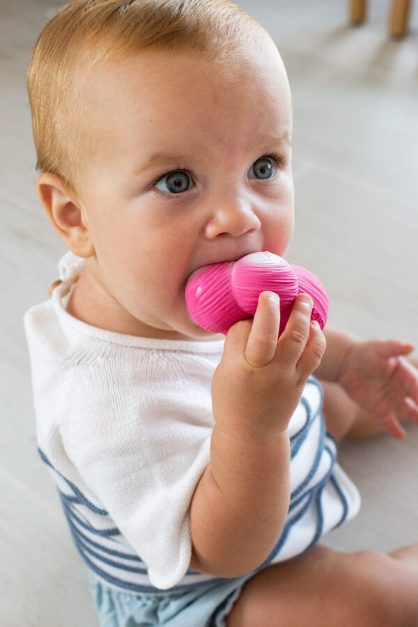 Małe dzieci uwielbiają fakturę gumy Hevea. Przynosi ona ukojonie obolałym dziąsłom.
