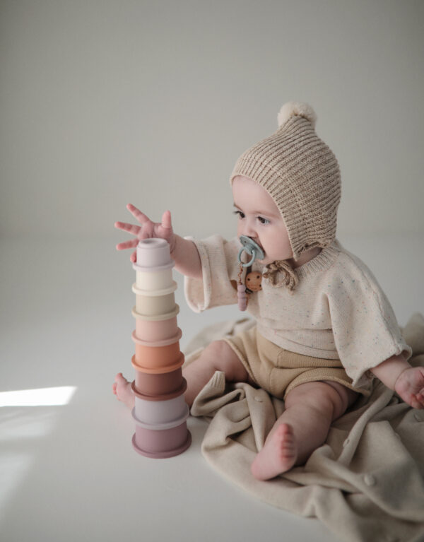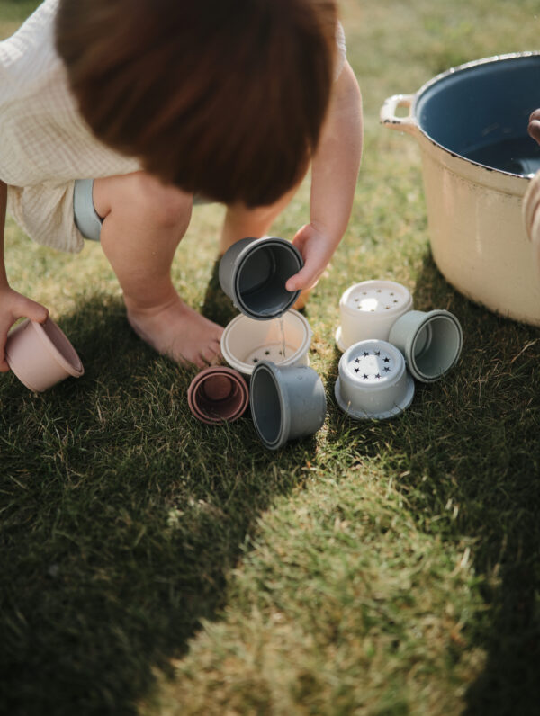 Zabawa nią, stymuluje rozwój umiejętności motorycznych, uczy rozpoznawać różnice w rozmiarach i układać je według odpowiedniej kolejności. Chwytanie i układanie kubeczków pomaga rozwijać zręczność oraz umiejętność rozwiązywania problemów.